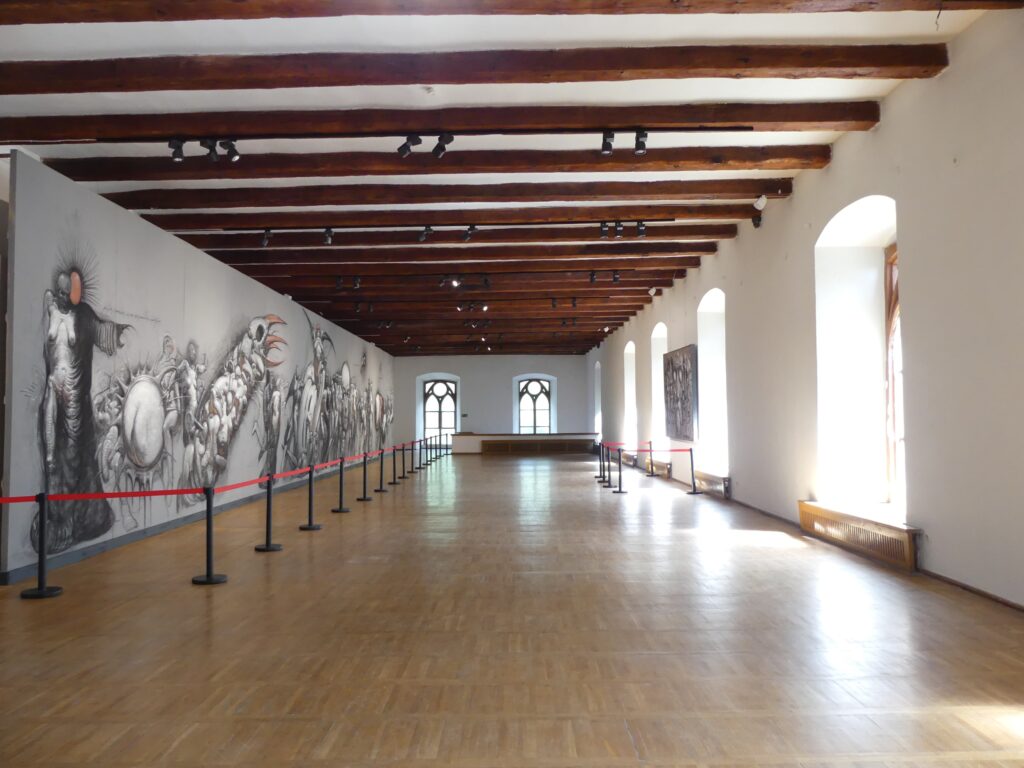 Na poniższych zdjęciach można zobaczyć wyremontowaną salę z wyeksponowanym słynnym dziełem F. Starowieyskiego, a także kilka ujęć z prowadzonych wcześniej, skomplikowanych prac remontowych stropu nad salą Galerii.