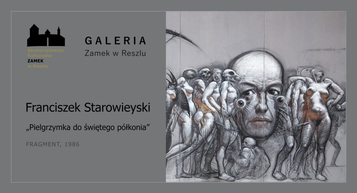 Zapraszamy do świeżo wyremontowanej sali w Galerii “Zamek”, poświęconej Franciszkowi Starowieyskiemu – Honorowemu Obywatelowi Reszla, przez lata związanemu z miastem oraz Zamkiem, który przez 26 lat, w okresie letnim, tworzył na zamku w Reszlu. W górnej sali Galerii można już obejrzeć m.in. jego największy obraz, zatytułowany “Pielgrzymka do Świętego Półkonia”.